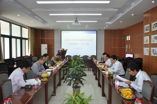 10月9日,學校學科建設處閆相禎處長等一行來我院調研教授委員會運行情況,學院教授委員會主任蒲春生做彙報,院領導姚軍、張衛東及各係領導參加。