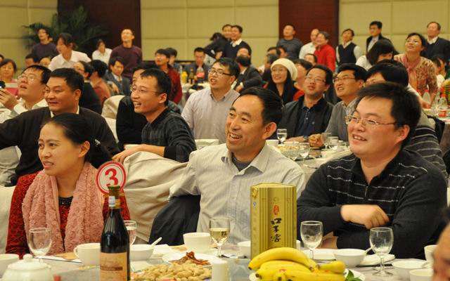 精彩的文藝演出之後,學院黨委書記張衛東提祝酒詞,元旦酒會正式開始。