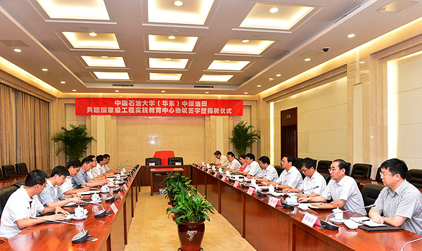 冷潛高度評價我校在人才培養、科學研究等方麵所取得的成就,指出無論在中原油田開發初期、輝煌時期,還是在改革發展時期,中國石油大學(華東)都給予了技術和人才方麵大力支持,近千名畢業生在中原油田發揮著重要作用,一大批優秀畢業生成為中原油田和所屬二級單位的領導、骨幹。中原油田將一如既往地支持學校發展,在科研攻關、人才培養、博士後科研工作站建設等方麵與學校深化合作,希望學校教師關注和幫助中原油田解決技術和管理難題。冷潛要求工程實踐教育中心具體承建單位要高起點起步、高標準建設,努力將中心建設成為一個高水平的國家級教育平台。