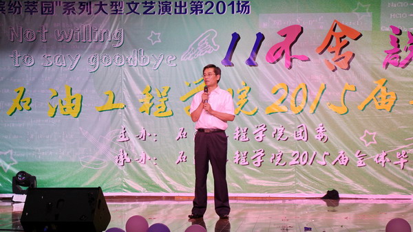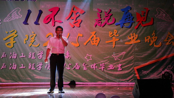 6月15日,學院2015屆畢業生晚會在唐島灣多功能廳上演,學院領導張衛東、陳德春、王業飛、王林等及班主任、非常“1+6”宿舍導師、輔導員與全體畢業生歡聚一堂,共同欣賞了一場別開生麵的、以班會形式舉辦的畢業晚會。